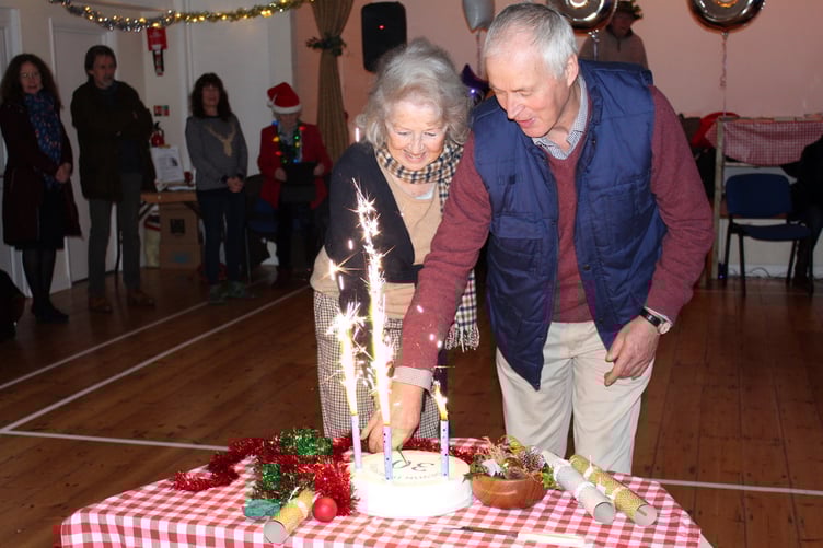 At the Dowsers’ 30th birthday party at Spreyton, the birthday cake was cut by Marjorie Bowers, wife of the late John, with Steve Bolt.