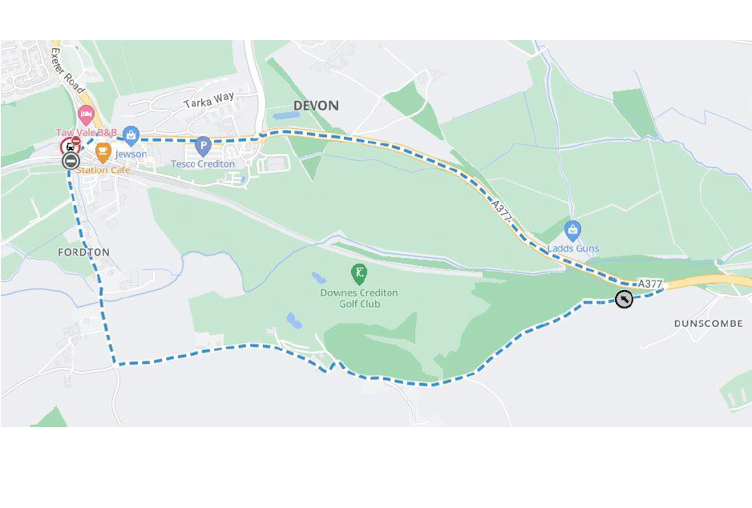 The alternative, signed, route for vehicles will be via the A377 Exeter Road, the road from Fordton Cross to village cross, Station Road and vice versa.