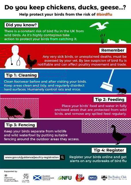 For more guidance please visit: https://www.gov.uk/guidance/avian-influenza-bird-flu .