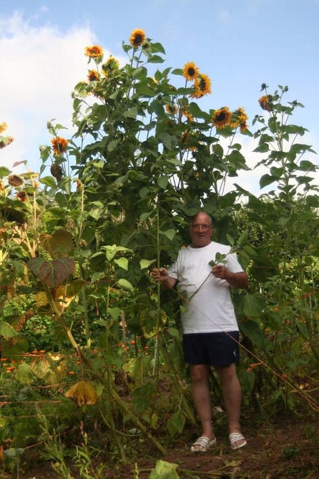 “They would be taller but the stems got a bit bent because of the wind. I hope to keep some of the seed for next year,” he added. He would very much like to know if anyone has even taller sunflowers.
