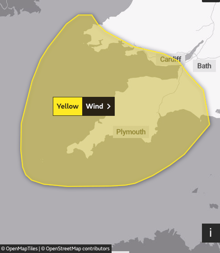 THE Met Office has issued a Yellow wind warning likely to affect the Crediton area on Saturday, March 12, from 1pm to 7pm.